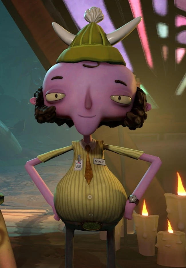 - His voice actor, Jack Black, has a history of working with Double Fine, voicing Eddie Riggs (the protagonist of Brütal Legend) as well as Harm'ny Lightbeard in Broken Age. Jack Black is also a well-known movie actor and voice actor, notably voicing Po from DreamWorks' Kung Fu Panda, and is one half of the comedy rock music duo Tenacious D alongside Kyle Gass.