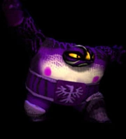 He’s a mental figure who introduces the wrestlers as well as directly or indirectly offering Raz some tips if he is losing. His appearance during the actual game is never reveal but his talksprite icon shows a bit how he looks. He has purplish pink skin, a faint black mustache and shows five fingers in his only visible hand.