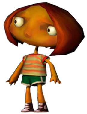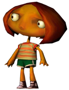Milka Phage is a seven year old psychic camper at Whispering Rock Psychic Summer Camp. Milka is a master of invisibility, disappearing when anyone gets too close to her. She is the girlfriend of Elton Fir, with whom she kisses often throughout the game and of whom she is very protective. She is prone to seizures.