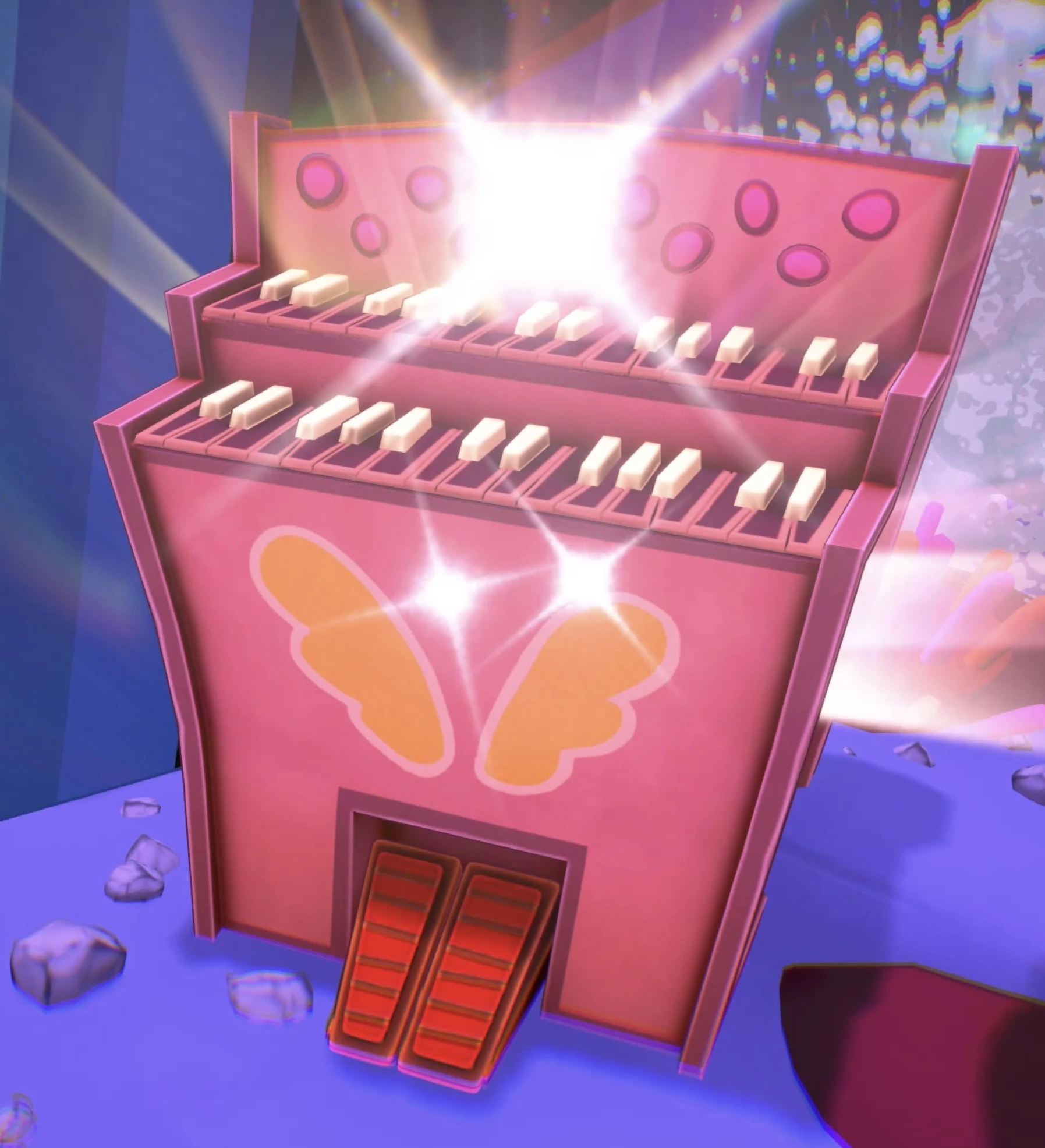 The Organ is one of the instruments played by Feast of the Senses, the band made up of PSI-King's five senses inside PSI-King's Sensorium. It looks like a pink Hammond-style organ, with hand shaped icons painted on the sides. It belongs to Dr. Touch.